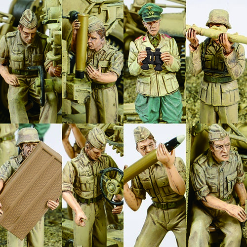 • 德军88毫米高射炮,Flak 36型基座配Flak 18型一体式炮管(包括七个沙漠服饰士兵公仔 & 隆美尔将军)