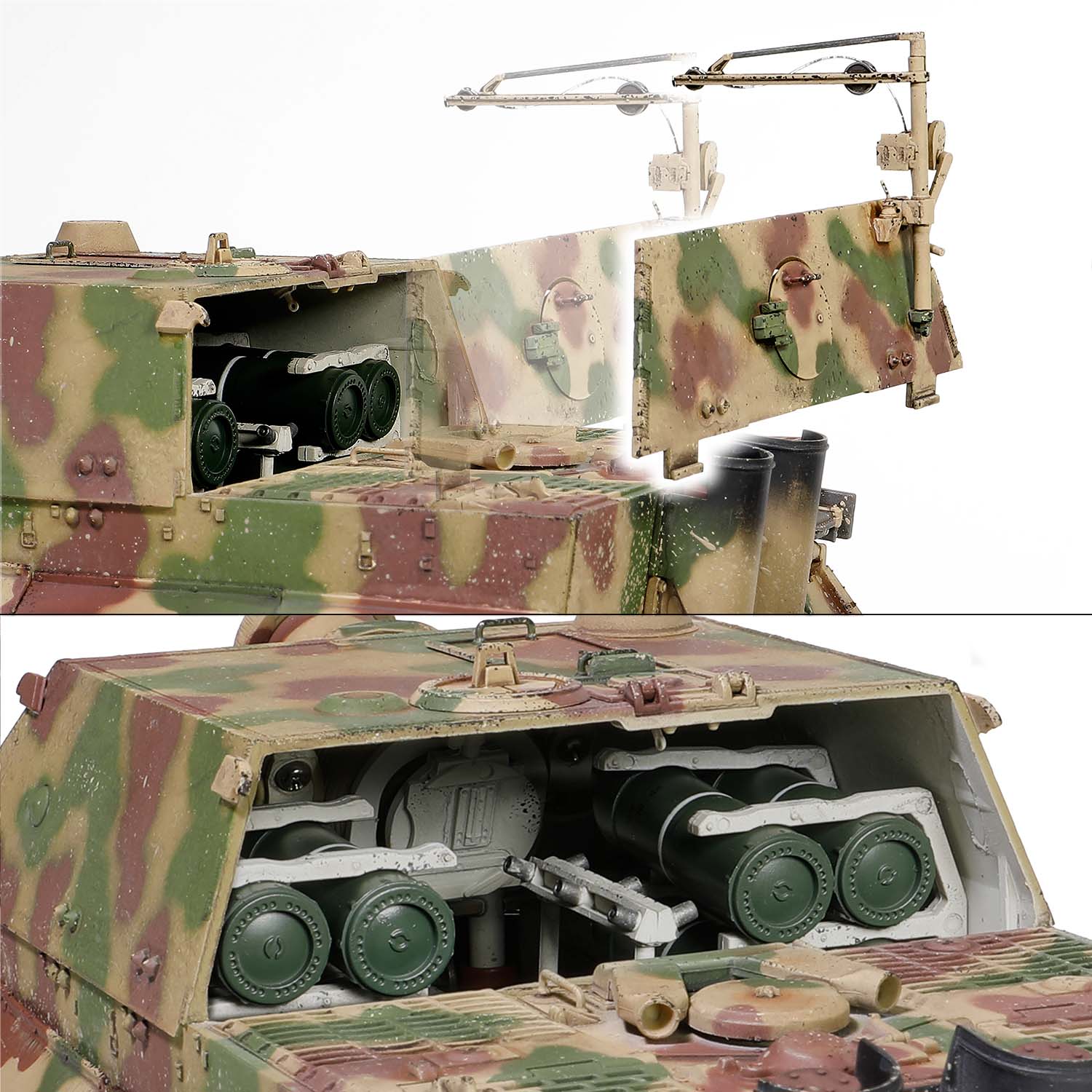 The German army will always have enough heavy artillery to fulfill the goal of crushing enemies at long distances, such as 600mm heavy mortars, but such huge artillery can only be limited to railways, making it inflexible and insufficient to complete urban bombing missions. The then German Field Marshal brainstormed and he came up with a "new weapon" that combined a Tiger tank chassis with a 38cm breech-loaded rocket, designed to protect naval bases from submarine attacks.
