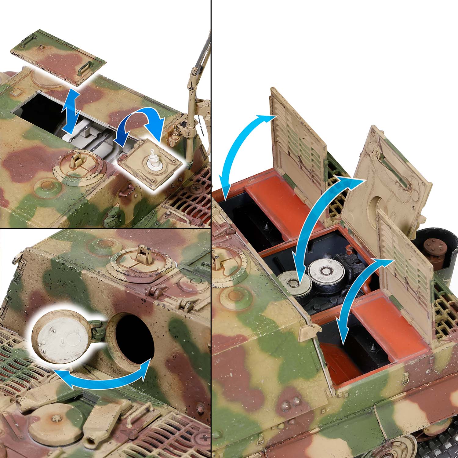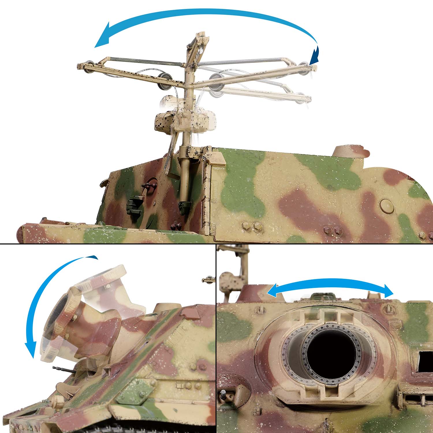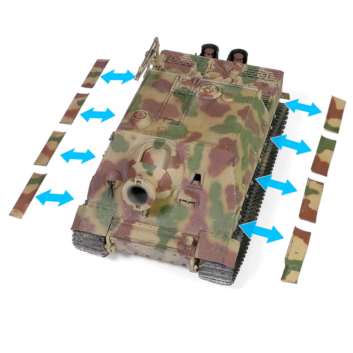 Finally, in the summer of 1944, a batch of damaged Tigers returned from the front and were assigned to the Alkett company for modification. The Assault Tiger prototype was modified using a recycled Tiger tank chassis produced as standard in the late production phase. The wheels have been converted from rubber tires to all-steel types. The engine has been updated from the early HL210 P30 type to the HL230 P45, with three conical filters. The later improved Assault Tiger main gun was equipped with 32 air holes, while the 1943 prototype had 20. In addition, the main gun was also equipped with a counterweight ring. During the Sturm Tiger's short production period, only 18 were built, 12 between August and September 1944 and the remaining five in December, along with the first prototype demonstrated at the Arys proving ground in East Prussia .